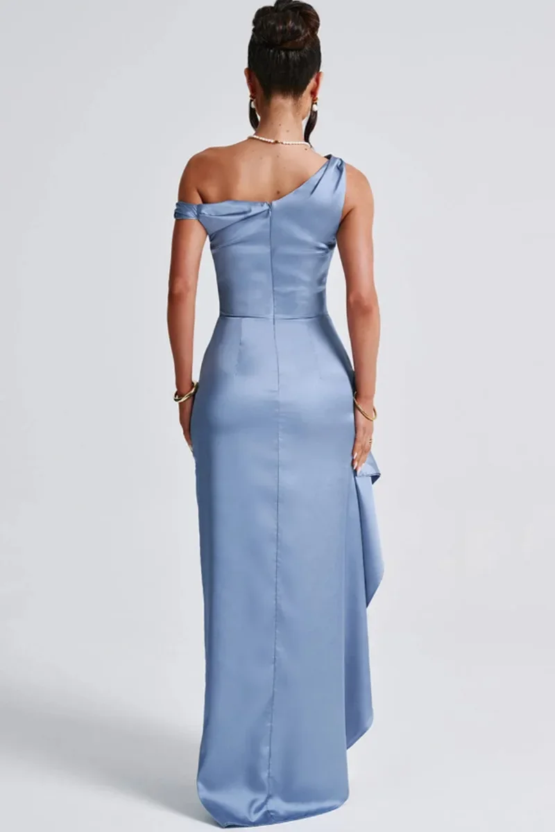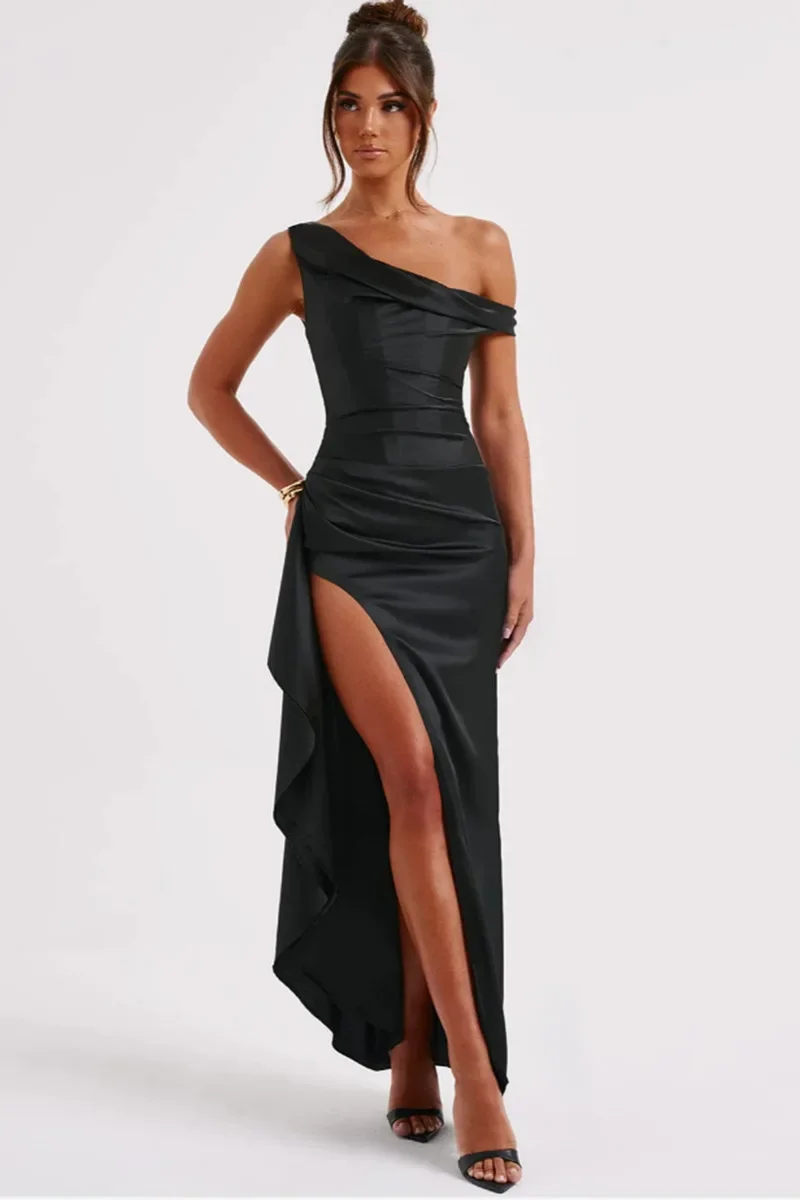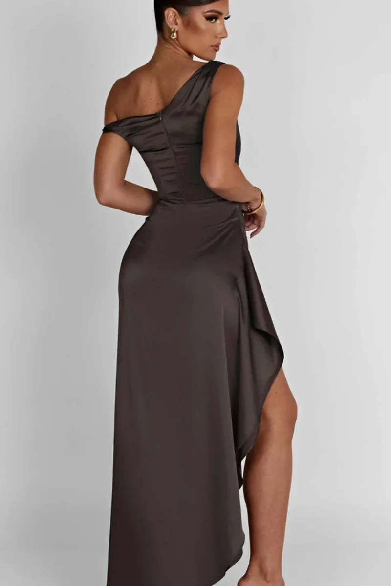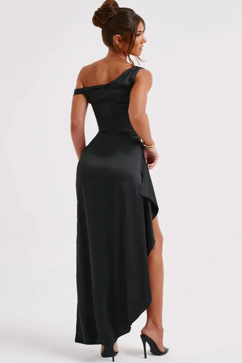 Sophisticated Hemline: The unique irregular hem slit adds movement and refinement, making this dress a true standout piece.