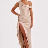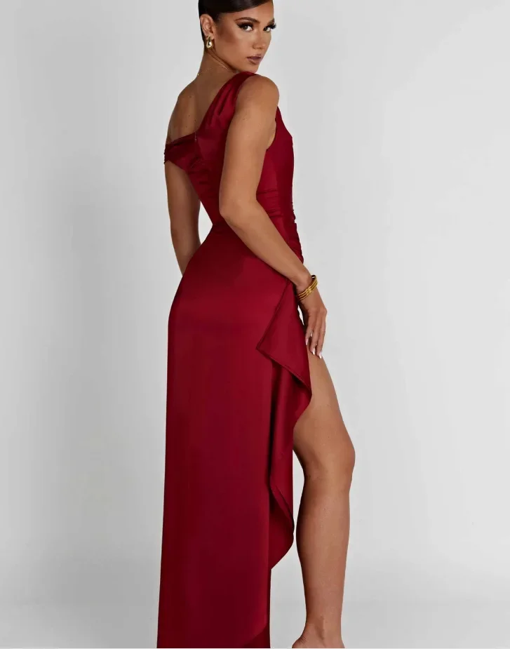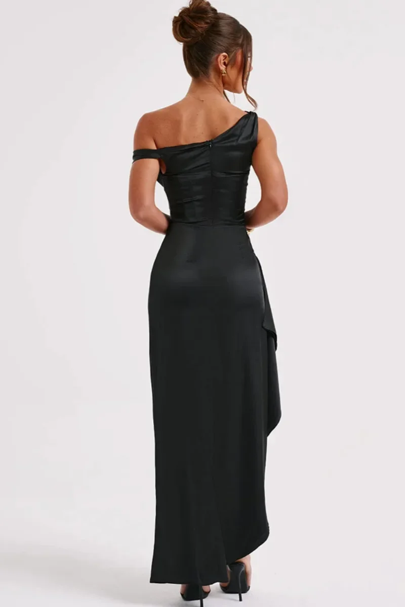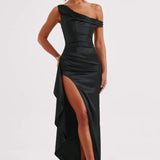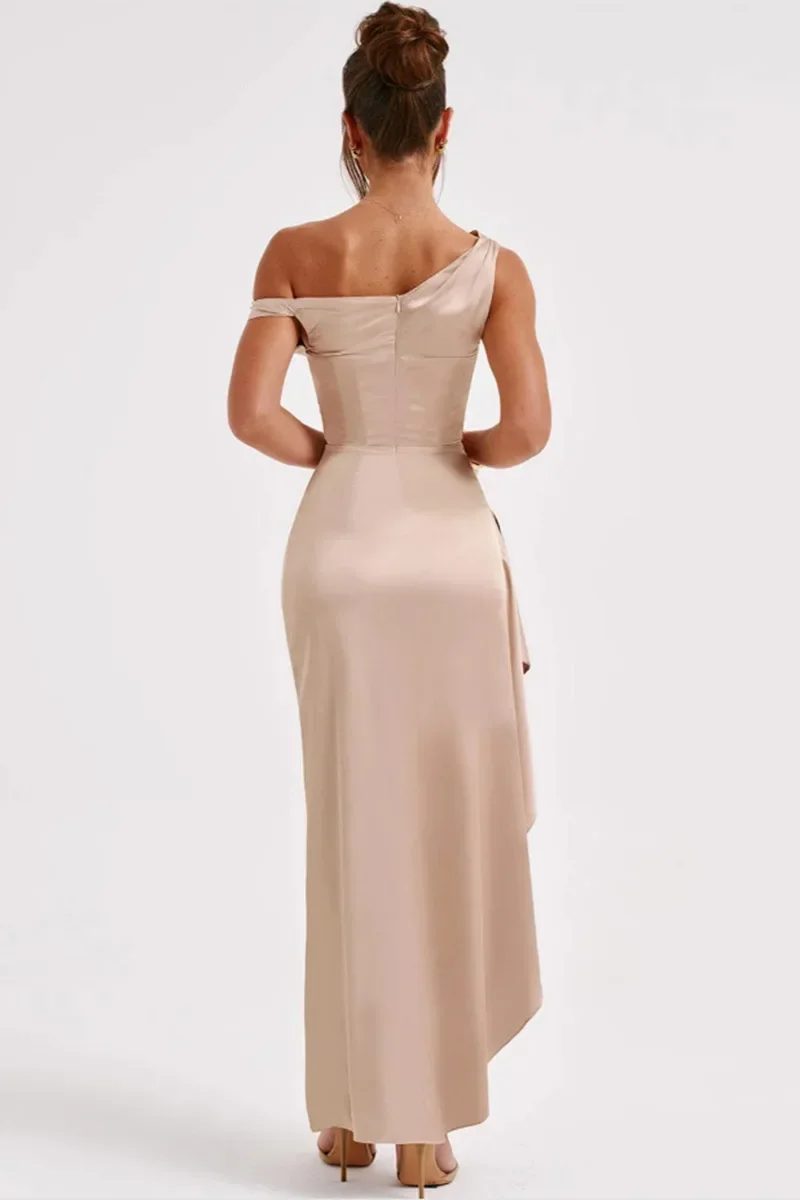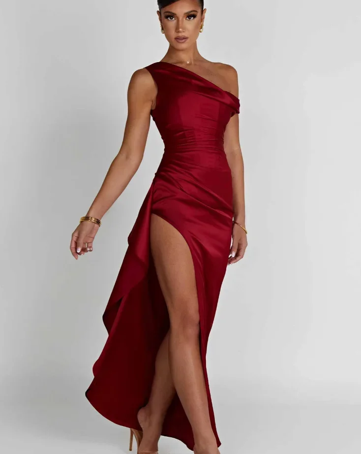 Sophisticated Hemline: The unique irregular hem slit adds movement and refinement, making this dress a true standout piece.